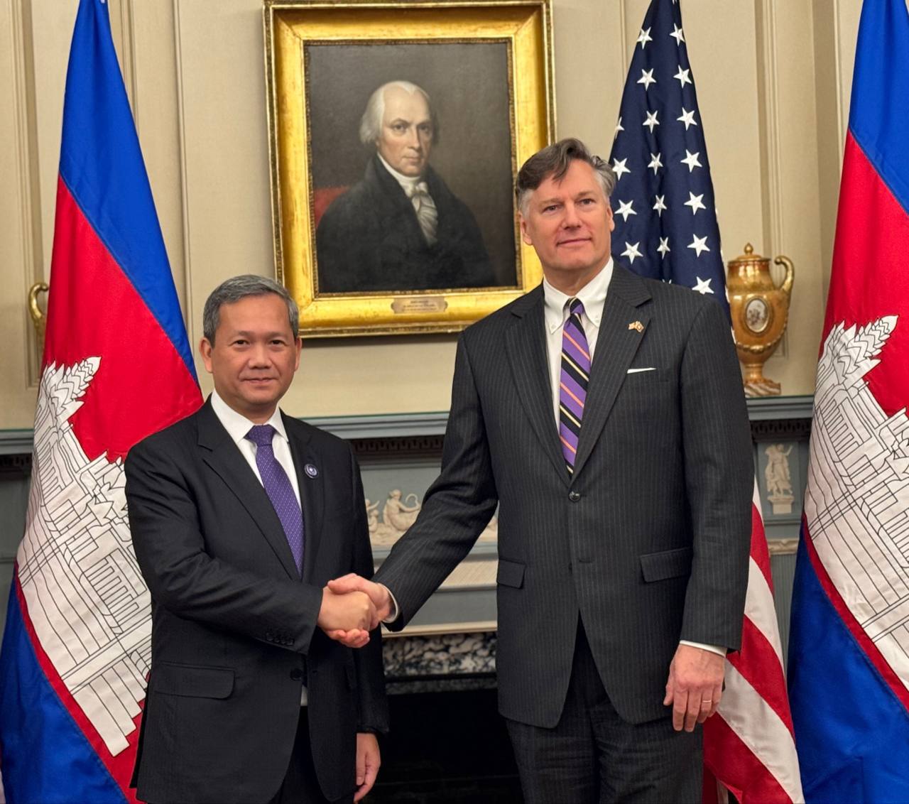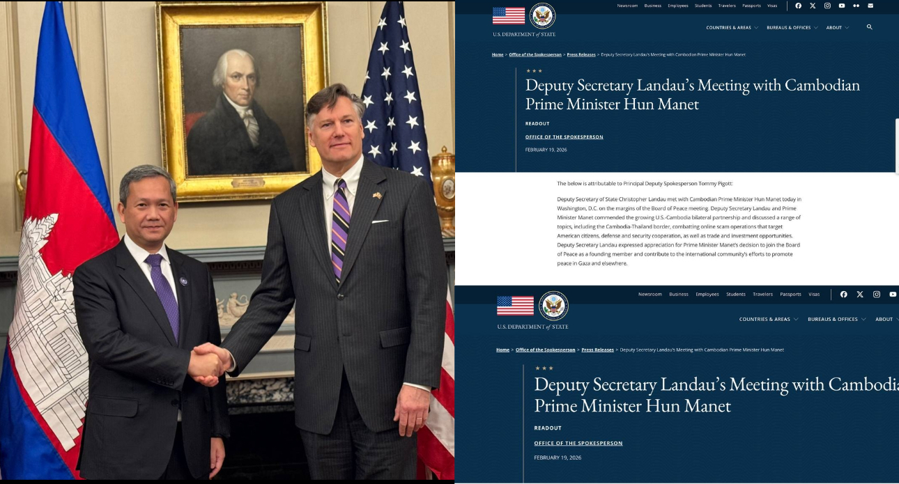Home » អនុរដ្ឋលេខាធិការ លោក Christopher Landau បានជួបជាមួយសម្តេចធិបតី ហ៊ុន ម៉ាណែត នាយករដ្ឋមន្ត្រីកម្ពុជា នៅថ្ងៃនេះ នៅរដ្ឋធានីវ៉ាស៊ីនតោន ឌីស៊ី ស្តីពីការរៀបចំកិច្ចប្រជុំក្រុមប្រឹក្សាភិបាលសន្តិភាព