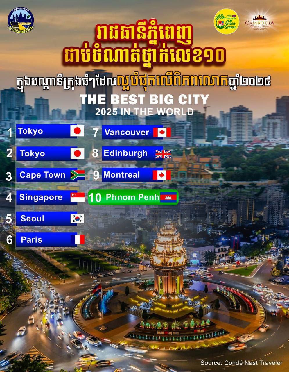 Home » អបអរសាទរ! រាជធានីភ្នំពេញ ជាប់ចំណាត់ថ្នាក់លេខ១០ ក្នុងបណ្តាទីក្រុងធំៗដែលល្អបំផុតលើពិភពលោកឆ្នាំ២០២៥