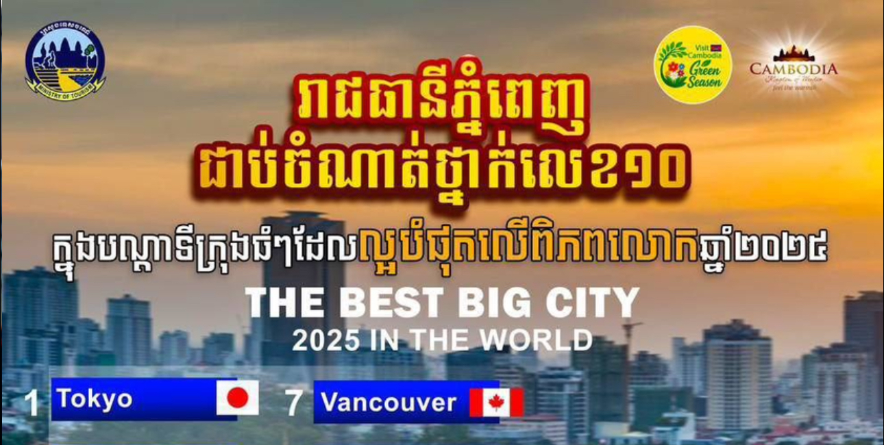 អបអរសាទរ! រាជធានីភ្នំពេញ ជាប់ចំណាត់ថ្នាក់លេខ១០ ក្នុងបណ្តាទីក្រុងធំៗដែលល្អបំផុតលើពិភពលោកឆ្នាំ២០២៥