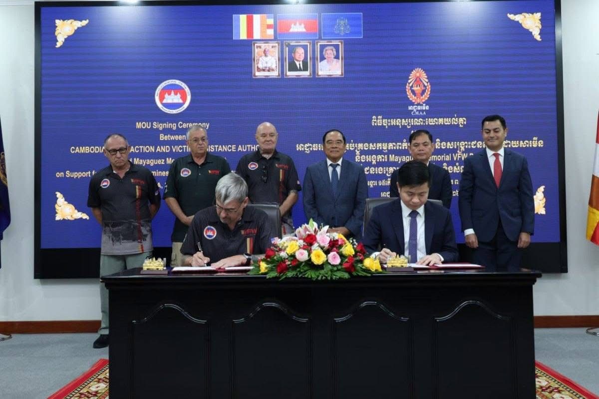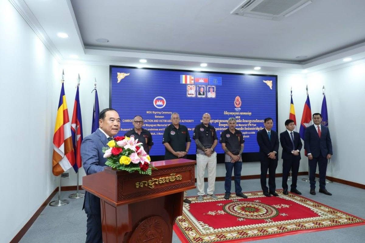ភ្នំពេញ៖ ថ្ងៃទី៣ ខែមីនា ឆ្នាំ២០២៦ នៅទីស្នាក់ការអាជ្ញាធរមីន ឯកឧត្តមបណ្ឌិត លី ធុជ ទេសរដ្ឋមន្រ្តី និង​ជា​អនុ​ប្រធានទី១ អាជ្ញាធរមីន បានអញ្ជើញ​ជាអធិបតី​ក្នុង​ពិធី​ចុះហត្ថលេខា​លើ​អនុស្សារណៈ​យោគ​យល់​គ្នារវាងអាជ្ញាធរមីន និងអង្គការ Mayaguez Memorial VFW Post 11575 ស្តីពី​ការ​គាំទ្រ​ដល់ជនរងគ្រោះដោយសារមីន និងសំណល់ជាតិផ្ទុះពីសង្គ្រាម។ អនុស្សារណៈយោគយល់នេះ ត្រូវបានចុះហត្ថលេខាដោយ ឯកឧត្តម លី បញ្ញារិទ្ធិ៍ អគ្គលេខាធិការ តំណាងអាជ្ញាធរមីន និងលោក Gary Kidd តំណាងអង្គការ Mayaguez Memorial VFW Post 11575 ។