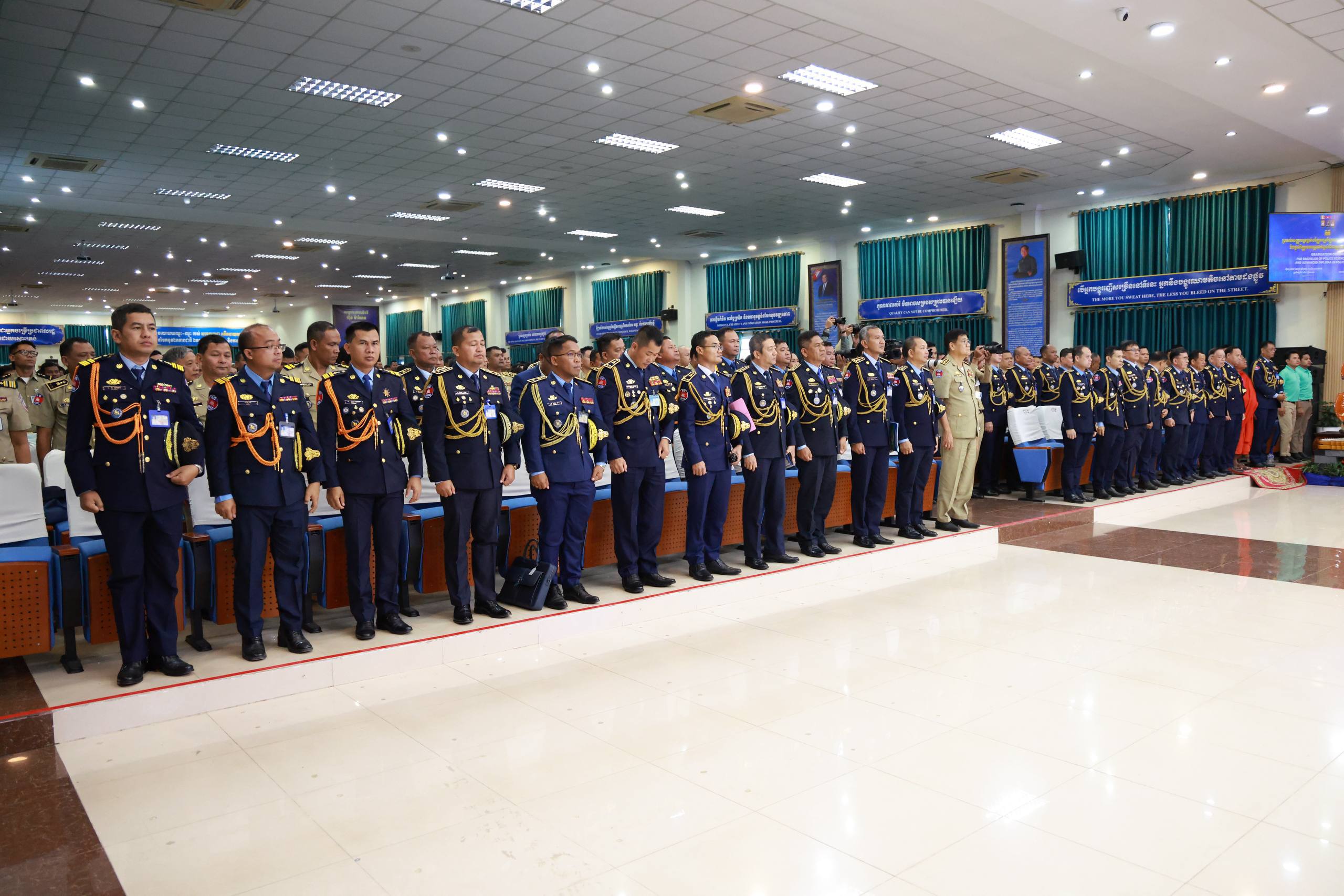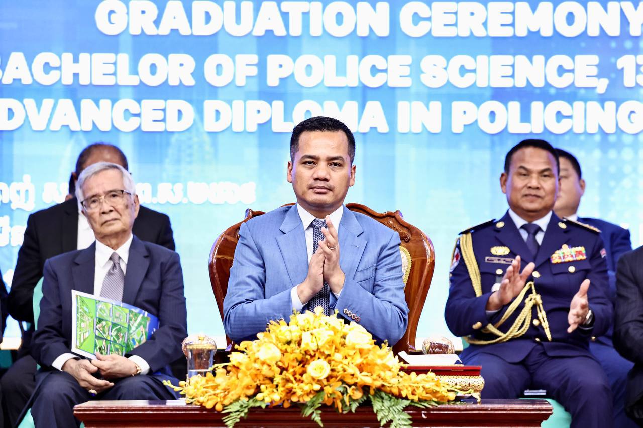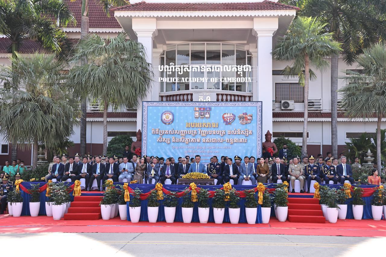 ថ្លែងក្នុងពិធីប្រគល់សញ្ញាបត្រ វិញ្ញាបនបត្រ ដល់សិស្ស និស្សិត និងសិក្ខាកាមនគរបាលជាតិ និងមន្រ្តីពន្ធនាគារ នៅបណ្ឌិត្យសភានគរបាលកម្ពុជា នាព្រឹកថ្ងៃទី៩ ខែមីនា ឆ្នាំ២០២៦ ឯកឧត្តមអភិសន្តិបណ្ឌិត ស សុខា ឧបនាយករដ្ឋមន្ត្រី រដ្ឋមន្ត្រីក្រសួងមហាផ្ទៃ បានមានប្រសាសន៍លើកទឹកចិត្តថ្នាក់ដឹកនាំ សាស្រ្តាចារ្យ និងគ្រូនគរបាលជាតិ នៃបណ្ឌិត្យសភានគរបាលកម្ពុជា បន្តសម្រិតសម្រាំង និងសម្រួចគុណភាព នៃការអប់រំ បណ្ដុះបណ្ដាល និងហ្វឹកហាត់ជំនាញផ្សេងៗដល់សិស្ស និស្សិតនគរបាល រួមទាំងឥរិយាបថ និងក្រមសីលធម៌ល្អ។