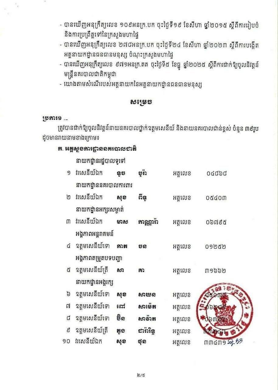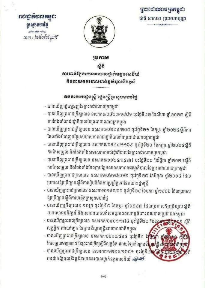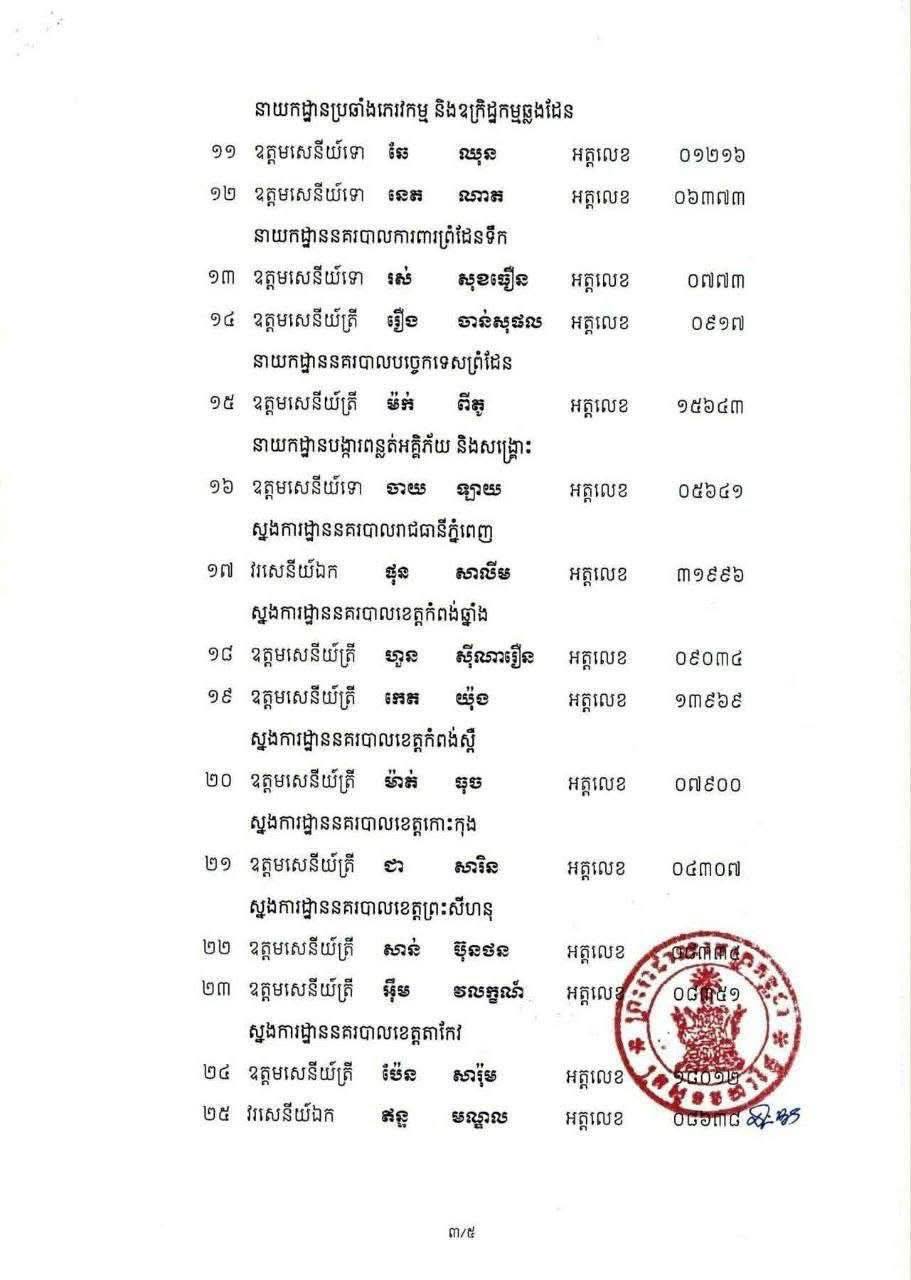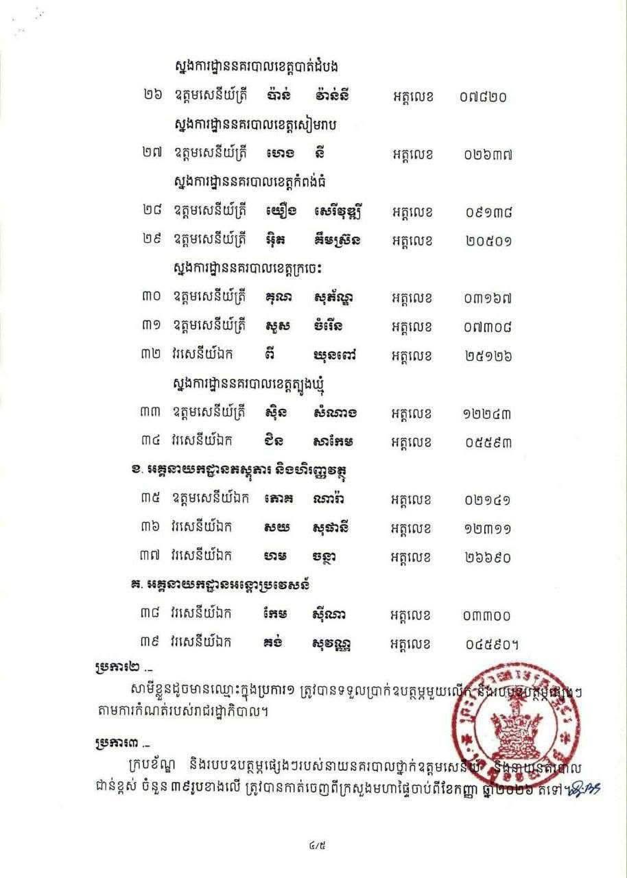 រដ្ឋមន្ត្រីក្រសួងមហាផ្ទៃ ចេញប្រកាសដាក់ឱ្យចូលនិវត្តន៍នាយនគរបាលថ្នាក់ឧត្តមសេនីយ៍ និងនាយនគរបាលជាន់ខ្ពស់ ចំនួន ៣៩រូប!