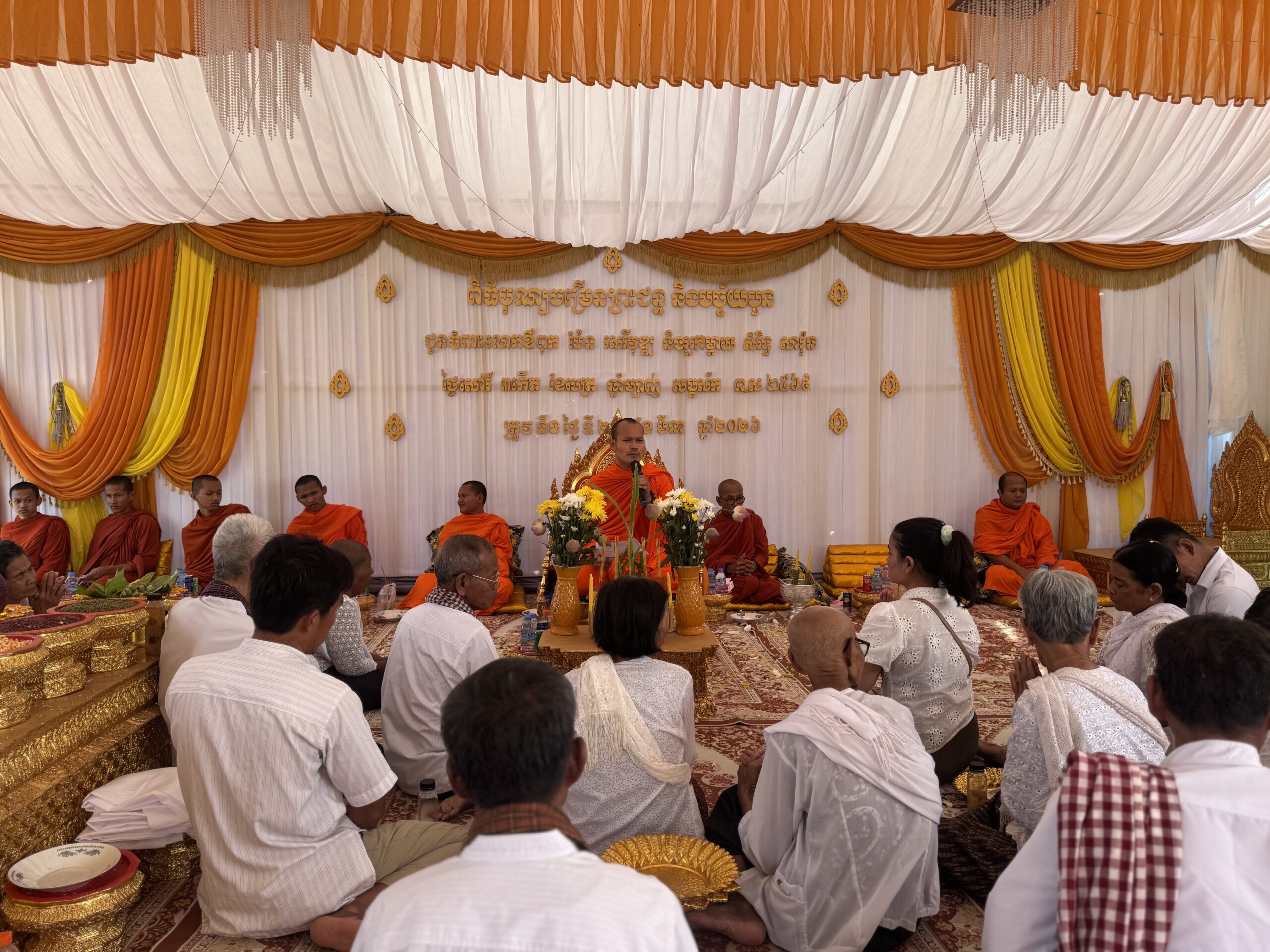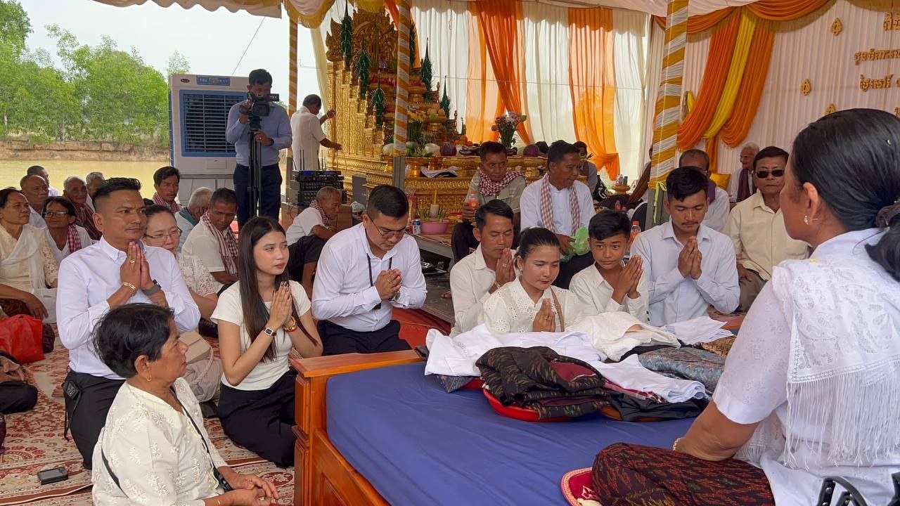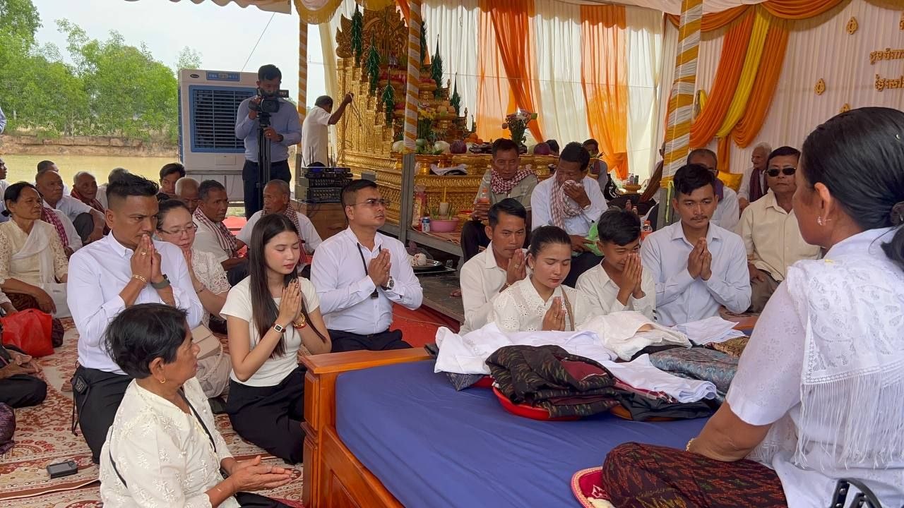 និងនិមន្តព្រសង្ឃសូត្រមន្តនៅថ្ងៃសៅរ៍ ៣កើត ខែចេត្រ ឆ្នាំម្សាញ់ សប្តស័ក ព.ស ២៥៦៩ ត្រូវនឹងថ្ងៃទី២១ ខែមីនា ឆ្នាំ២០២៦ លុះដល់វេលាម៉ោង ១២និង៣០ រសៀល ជួបជុំញាតិមិត្តជិតឆ្ងាយដើម្បីប្រារព្ធធ្វើពិធីក្រុងពាលី សុំម្ចាស់ទឹកម្ចាស់ដី បន្ទាប់មកប្រារព្ធពិធីងូតទឹកជូនអ្នកមានគុណ និងពូនភ្នំខ្សាច់ផ្តាច់កម្ម អញ្ជើញលោកឪពុកអ្នកម្តាយចូលរោងបុណ្យដើម្បីធ្វើពិធីថ្វាយខ្លួនជាឧបាសក ឧបាសិកា និងធ្វើបទនមស្សកា សមាទានសីល និងនិមន្តព្រះសង្ឃសម្តែង ធម៌ទេសនា ។