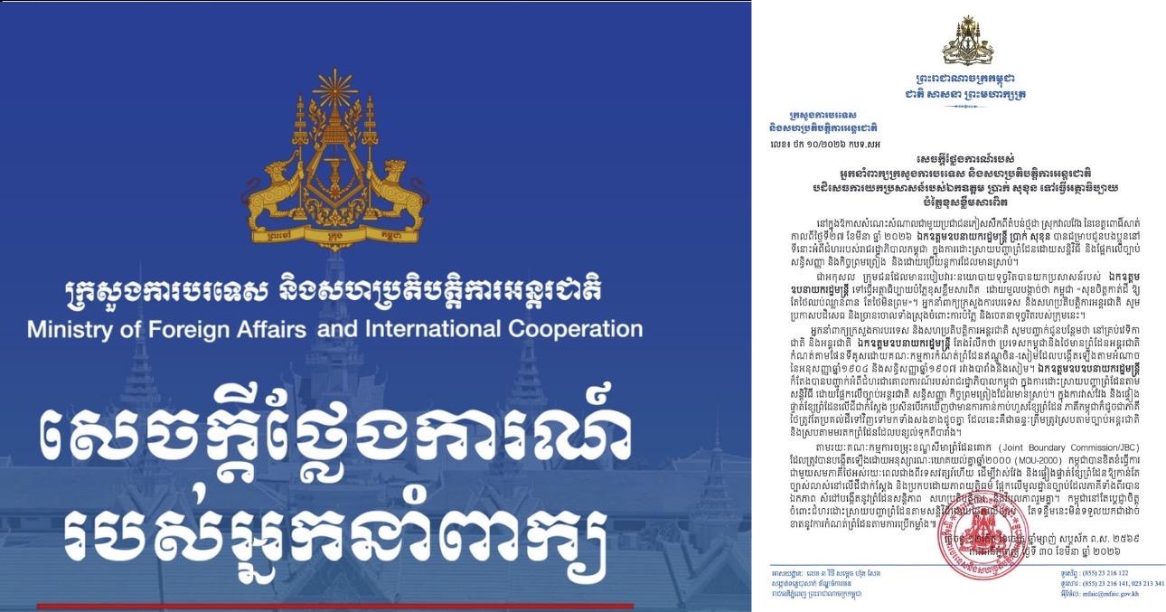 សេចក្តីថ្លែងការណ៍របស់ អ្នកនាំពាក្យក្រសួងការបរទេស និងសហប្រតិបត្តិការអន្តរជាតិ បដិសេធការយកប្រសាសន៍របស់ឯកឧត្តម ប្រាក់ សុខុនទៅធ្វើអត្ថាធិប្បាយ បំភ្លៃខុសខ្លឹមសារពិត