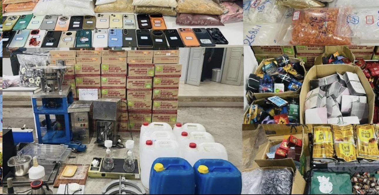 របាយការណ៍បានបន្តទៀតថា ក្រោយចាប់ជនល្មើសទាំង២២នាក់ កម្លាំងអាវុធហត្ថ បានដកហូតថ្នាំញៀន សារធាតុផ្សំ និងវត្ថុតាងជាច្រើនទៀត រួមមាន៖