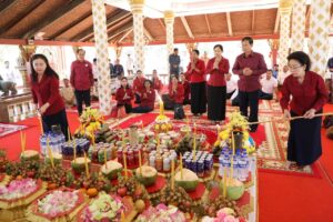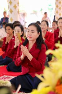 ខេត្តពោធិ៍សាត់ ៖ បន្ទាប់ពីបានចុះសួរសុខទុក្ខវីរយុទ្ធជនរងរបួសក្នុងសមរភូមិ ដែលកំពុងសម្រាកព្យាបាលនៅមន្ទីរពេទ្យបង្អែកខេត្តពោធិ៍សាត់, នៅថ្ងៃទី២៩ ខែធ្នូ ឆ្នាំ២០២៥នេះ ដែលត្រូវជាទិវាសន្តិភាពនៅកម្ពុជា សម្តេចកិត្តិព្រឹទ្ធបណ្ឌិត ប៊ុន រ៉ានី ហ៊ុនសែន ប្រធានកាកបាទក្រហមកម្ពុជា ឧត្តមភរិយាសម្តេចអគ្គមហាសេនាបតីតេជោ ហ៊ុន សែន ប្រធានព្រឹទ្ធសភា និងជាប្រធានក្រុមឧត្តមប្រឹក្សាផ្ទាល់ព្រះមហាក្សត្រ បានអញ្ជើញរៀបចំថ្វាយទៀន ធូប ផ្កាភ្ញី និងគ្រឿងរណ្ដាប់បូជា ជូនទេពឧកញ៉ា ឃ្លាំង មឿង និងលោកជំទាវ ខាន់ ខៀវ ទៅតាមគន្លងព្រះពុទ្ធសាសនា និងព្រហ្មញ្ញសាសនា ក្នុងគោលបំណងបន់ស្រន់សុំសេចក្តីសុខ សេចក្តីចម្រើន និងសុខសន្តិភាពជូនជាតិមាតុភូមិកម្ពុជា ដែលពិធីនេះត្រូវបានធ្វើឡើងនៅបូជនីយដ្ឋានទេពឧកញ៉ា ស្ថិតក្នុងភូមិកំពែងស្វាយ ឃុំស្នាមព្រះ ស្រុកបាកាន ខេត្តពោធិ៍សាត់។
