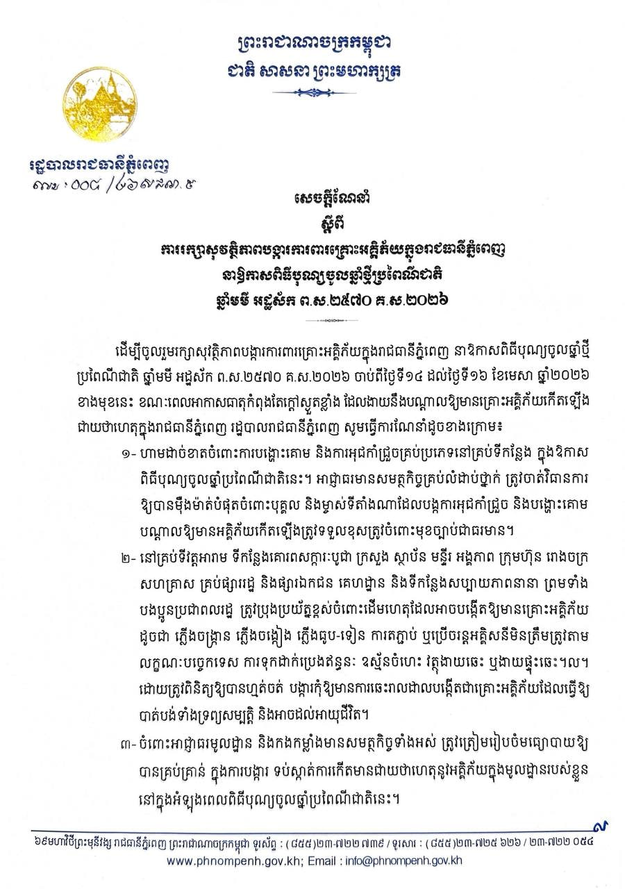 ឯកឧត្តម ស៊ុយ ជីហ៊ាង ផ្ញើសារលិខិតគោរពជូនពរ សម្ដេចបវរធិបតី ហ៊ុន ម៉ាណែត និងលោកជំទាវបណ្ឌិត ពេជ ចន្ទមុន្នី ក្នុងឱកាសពិធីបុណ្យចូលឆ្នាំថ្មី ប្រពៃណីជាតិខ្មែរ ឆ្នាំមមី អដ្ឋស័ក ពុទ្ធសករាជ ២៥៦៩April 12, 2026