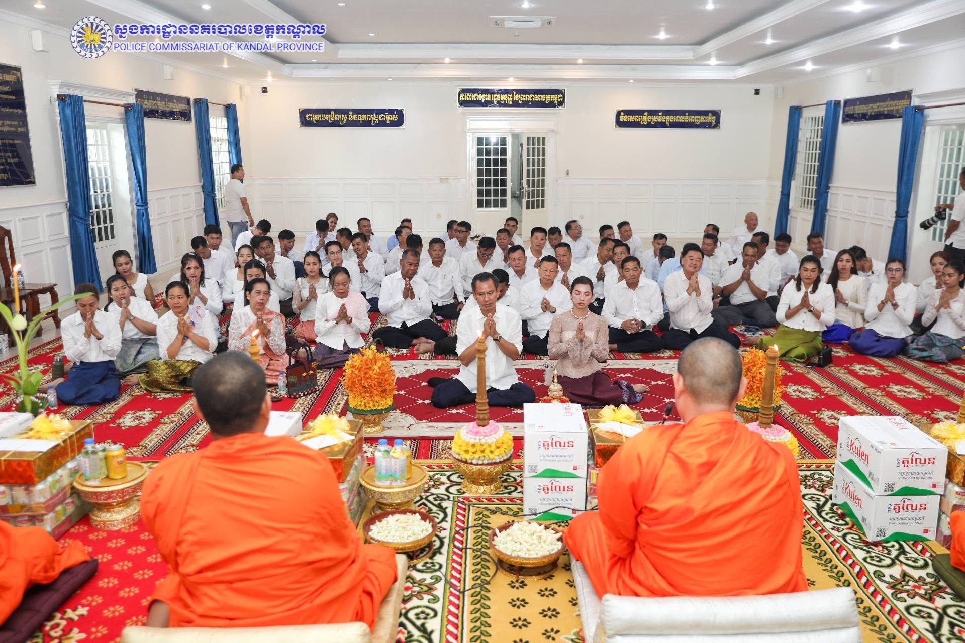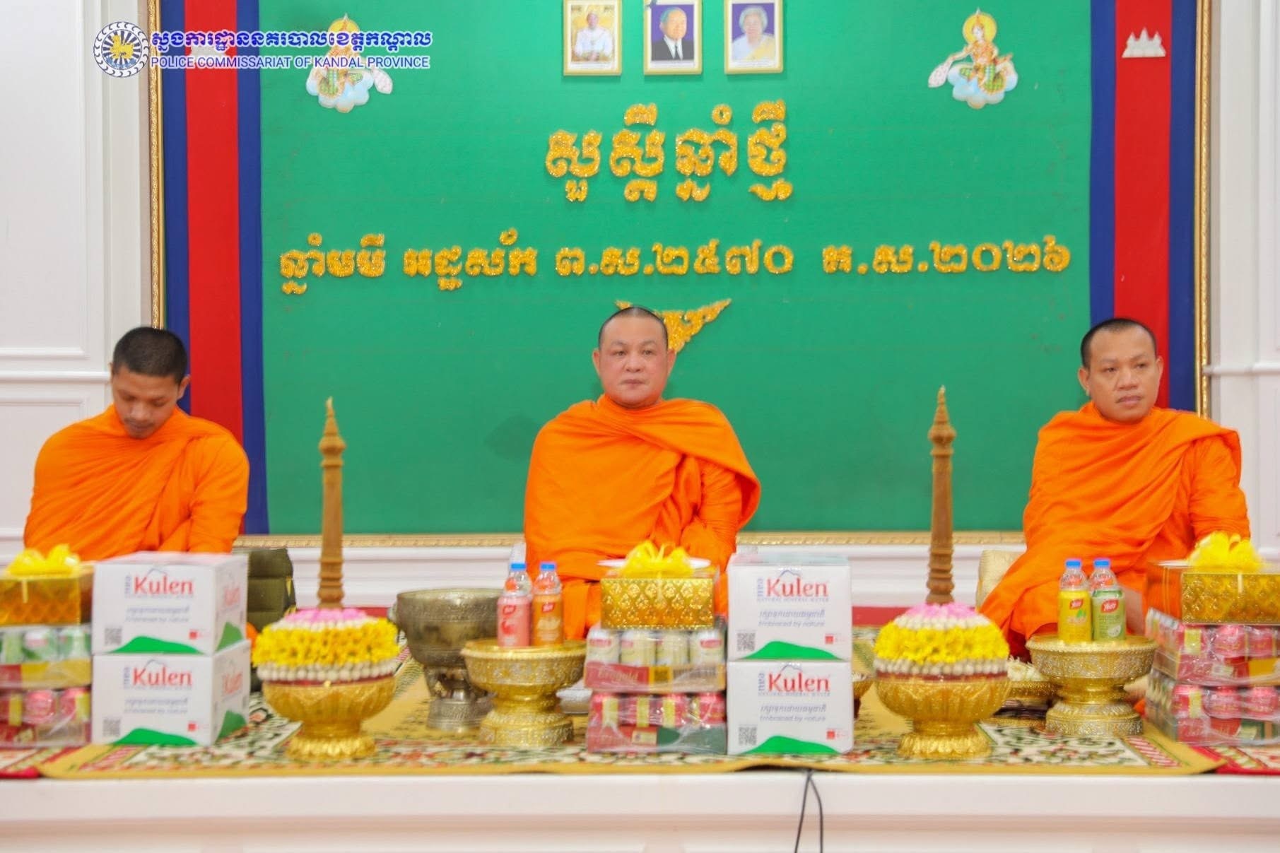 កណ្តាល៖ នៅរសៀលថ្ងៃសុក្រ ៨រោច ខែចេត្រ ឆ្នាំម្សាញ់ សប្តស័ក ពុទ្ធសករាជ ២៥៦៩ ត្រូវនឹងថ្ងៃទី១០ ខែមេសា ឆ្នាំ២០២៦នេះ លោកឧត្តមសេនីយ៍ទោ ឈឿន សុចិត្ត ស្នងការនគរបាលខេត្តកណ្តាល និងលោកស្រី រ៉េត ផល្លីដា រួមជាមួយកងកម្លាំងនគរបាលក្រោមឱវាទ បានចូលរួមក្នុងពិធីសូត្រមន្តចម្រើនព្រះបរិត្ត ក្នុងឱកាសបុណ្យចូលឆ្នាំថ្មីប្រពៃណីជាតិខ្មែរ ឆ្នាំមមី អដ្ឋស័ក ព.ស.២៥៧០ គ.ស.២០២៦ នៅស្នងការដ្ឋាននគរបាលខេត្តកណ្តាល។