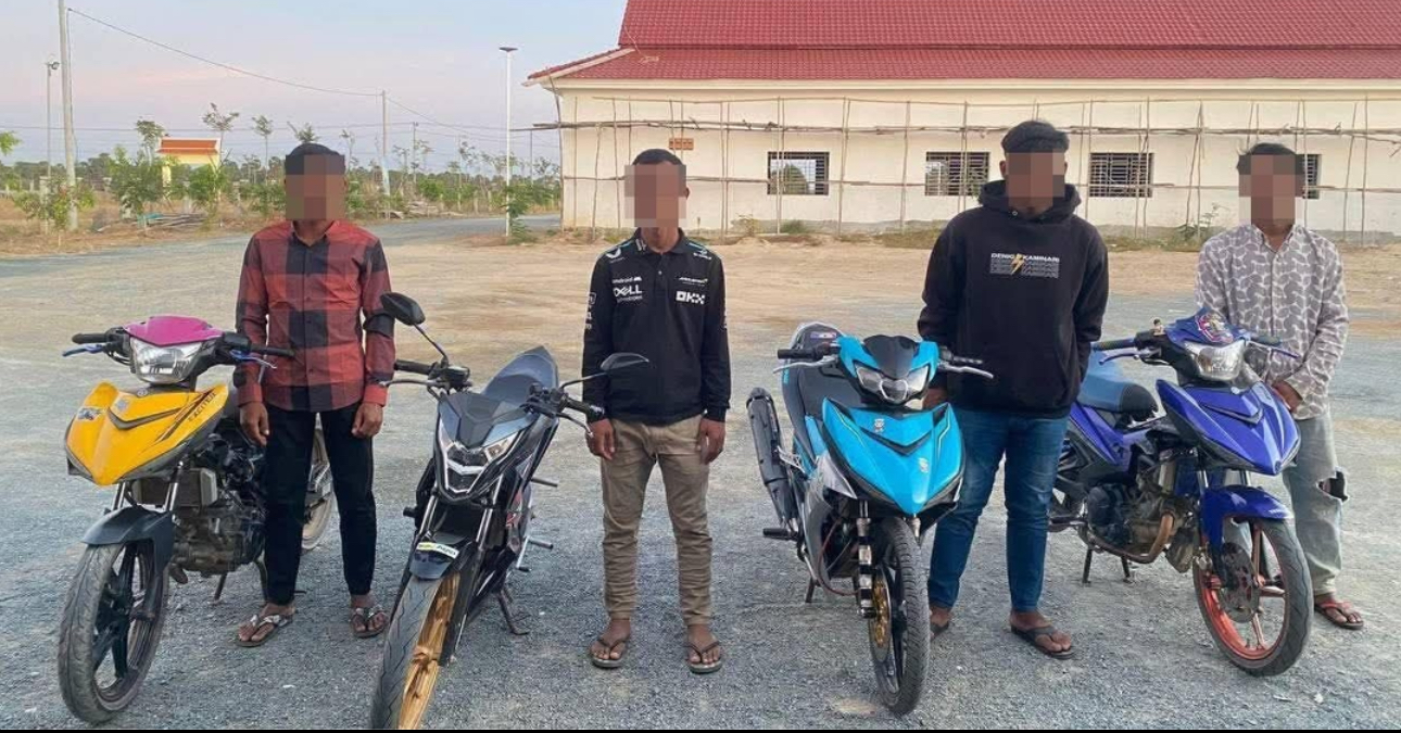 ខេត្តកំពង់ស្ពឺ៖ កម្លាំងនគរបាលស្រុកសាមគ្គីមុន្នីជ័យនៅល្ងាចថ្ងៃទី០៤ ខែមករា ឆ្នាំ២០២៦ បានឃាត់ខ្លួនយុវជន៤នាក់ដែលជិះម៉ូតូបំពាក់ស៉ីមាំងម៉ូតូខុសបច្ចេកទេស ត្រូវបានហៅមកណែនាំអប់រំនិងដកហូតម៉ូតូរក្សាទុករយះពេល៣ខែ។