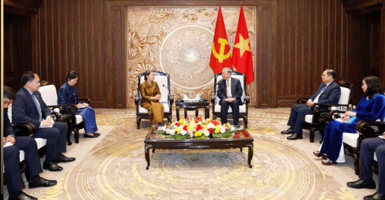 ហាណូយ៖ ក្នុងដំណើរបំពេញបេសកកម្ម នៅសាធារណរដ្ឋសង្គមនិយមវៀតណាម សម្តេចកិត្តិសង្គហបណ្ឌិត ម៉ែន សំអន អនុប្រធានគណបក្សប្រជាជនកម្ពុជា តំណាងដ៏ខ្ពង់ខ្ពស់ សម្តេចអគ្គមហាសេនាបតីតេជោ ហ៊ុន សែន ប្រធានគណបក្សប្រជាជានកម្ពុជា បានដឹកនាំគណប្រតិភូគណបក្សប្រជាជនកម្ពុជាចូលជួបសម្តែងការគួរសម និងអបអរសាទរ ឯកឧត្តម តូ ឡឹម អគ្គលេខាធិការនៃគណៈកម្មាធិការកណ្តាលបក្សកុម្មុយនិស្តវៀតណាម នៅទីក្រុងហាណូយ នារសៀលថ្ងៃចន្ទ ៨កើត ខែមាឃ ឆ្នាំម្សាញ់ សប្តស័ក ព.ស.២៥៦៩ ត្រូវនឹងថ្ងៃទី២៦ ខែមករា ឆ្នាំ២០២៦។