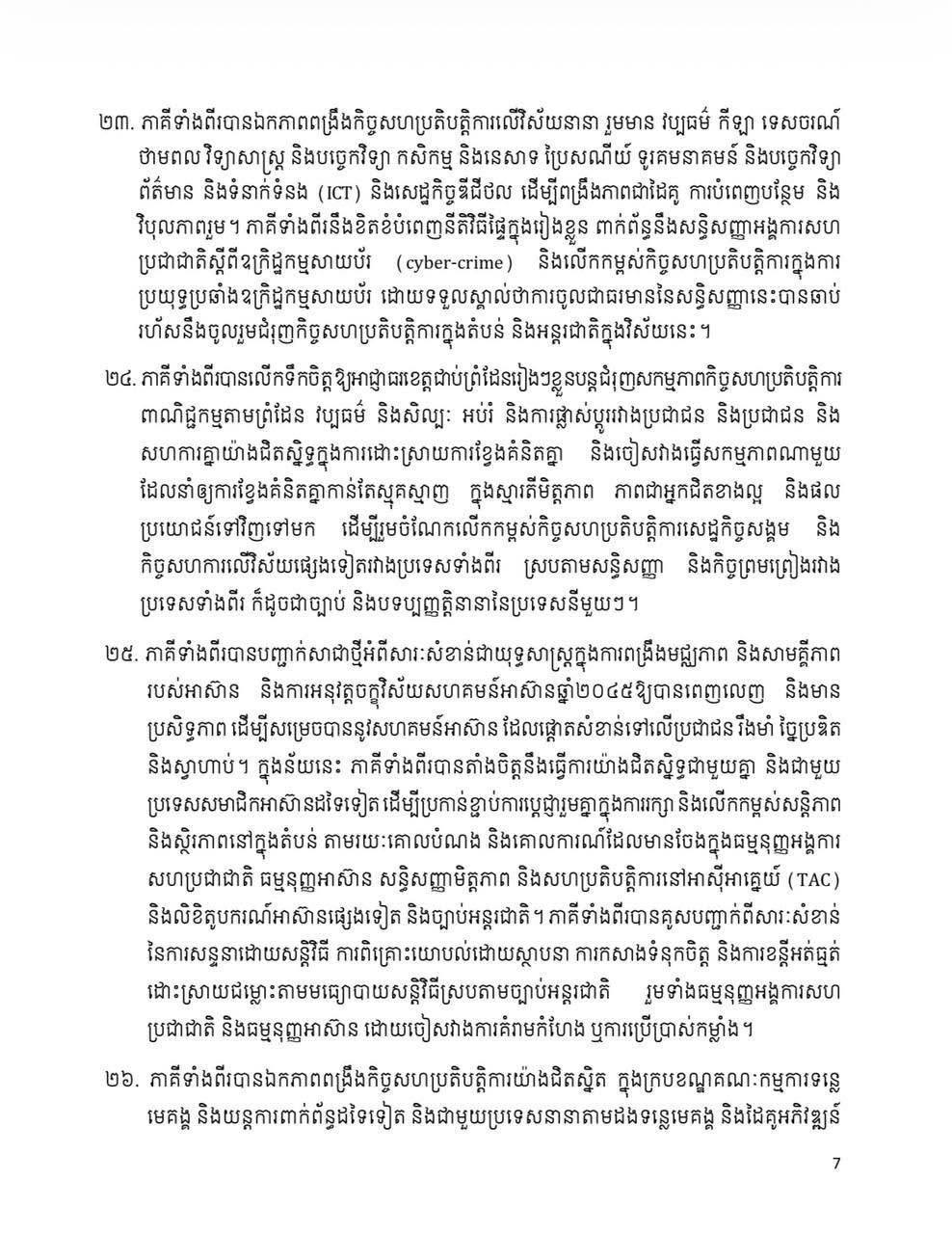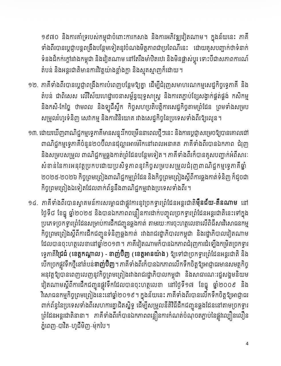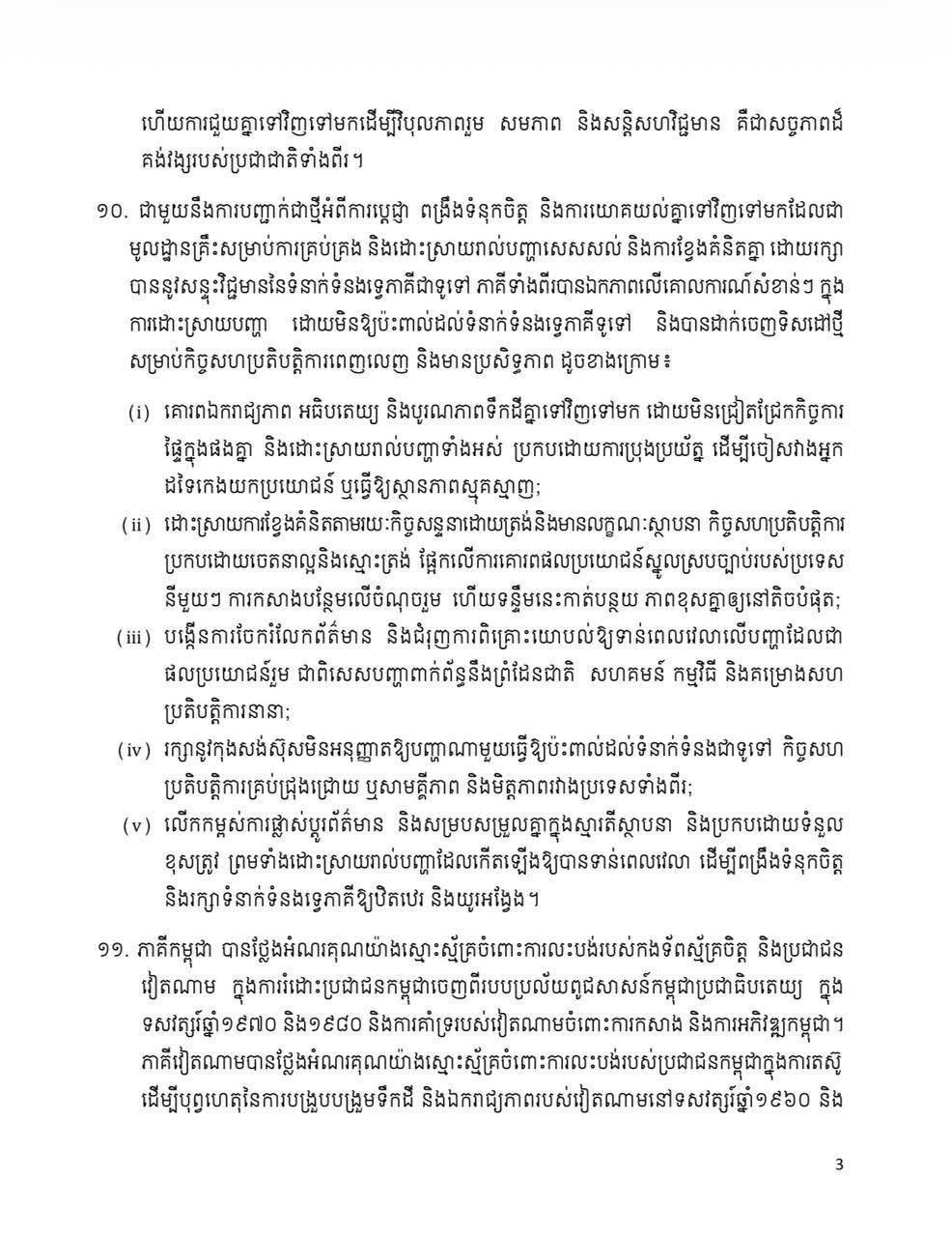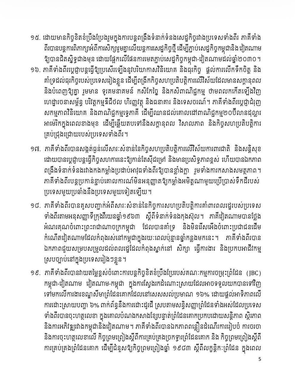 Share Facebook Twitter LinkedIn Pinterest Email សេចក្តីថ្លែងការណ៍រួម រវាងព្រះរាជាណាចក្រកម្ពុជា និង សាធារណរដ្ឋសង្គមនិយមវៀតណាម ក្នុងឱកាសដំណើរទស្សនកិច្ចផ្លូវរដ្ឋរបស់ ឯកឧត្តម តូ ឡឹម អគ្គលេខាធិការនៃគណៈកម្មាធិការមជ្ឈិមបក្សកុម្មុយនីស្តវៀតណាម នៅព្រះរាជាណាចក្រកម្ពុជា នៅថ្ងៃទី ៦ ខែកុម្ភៈ ឆ្នាំ ២០២៦។