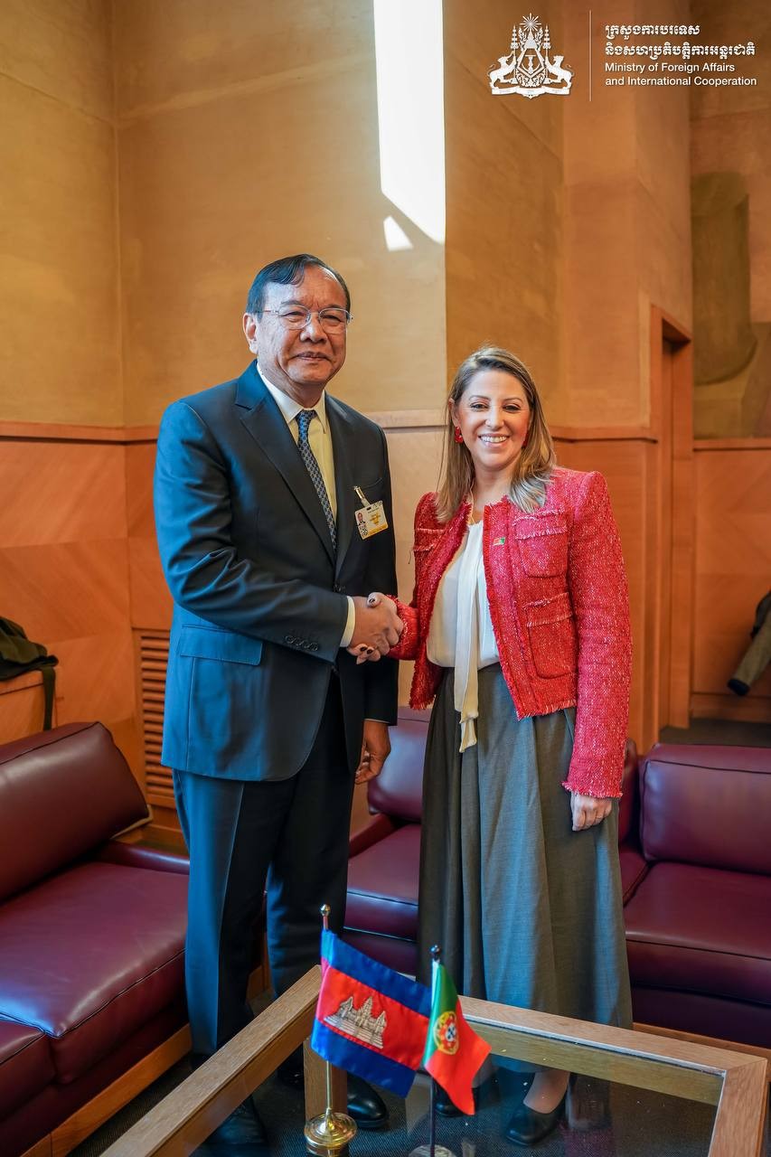 (ស្វីស)៖ លោកឧបនាយករដ្ឋមន្ត្រី ប្រាក់ សុខុន រដ្ឋមន្ត្រីការបរទេស និងសហប្រតិបត្តិការអន្តរជាតិ នៅថ្ងៃទី២៤ ខែកុម្ភៈ ឆ្នាំ២០២៥ បានអញ្ជើញទទួលជំនួបសម្តែងការគួរសមរបស់ លោកស្រី Ana Isabel Xavier រដ្ឋលេខាធិការ នៃក្រសួងការបរទេស ព័រទុយហ្កាល់ នៅទីក្រុងហ្សឺណែវ ប្រទេសស្វីស។