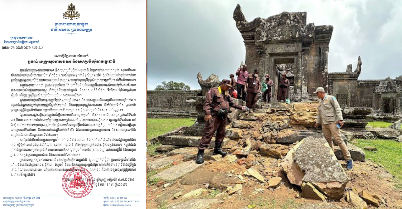 Home » កម្ពុជា បដិសេធ យ៉ាងដាច់អហង្ការចំពោះការលើកឡើងថ្មីៗនេះ របស់អ្នកការទូតជាន់ខ្ពស់ប្រទេសថៃ ដែលចោទប្រកាន់ថា កម្ពុជាបានប្រើប្រាស់ ប្រាសាទព្រះវិហារ ជាទីតាំងយោធា